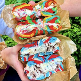 One of NYC’s most famous bagel shops is Liberty Bagels, which is known for their rainbow bagels with birthday cake cream cheese.