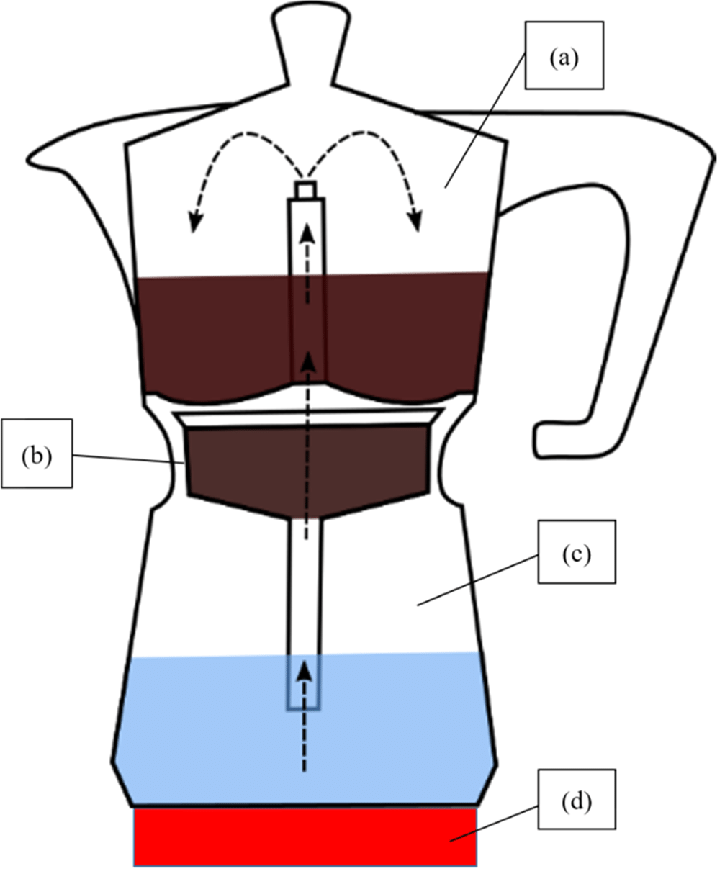 Before the modern high pressure espresso machine, there was still a way to make a higher pressure more caffeinated coffee than drip. It was called the Mocha Pot. To use it, you would fill the bottom with water, a cup of coffee, and then screw it together. Placed upon a source of heat, it would force the water through